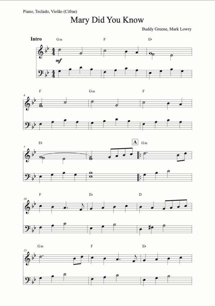 Flauta, Clarinete, Violino, Viola, Trompete, Sax Soprano, Sax Alto, Sax Tenor, Trombone, Cello, Teclado/Piano facilitado (com cifras) e Piano solo (com cifras).