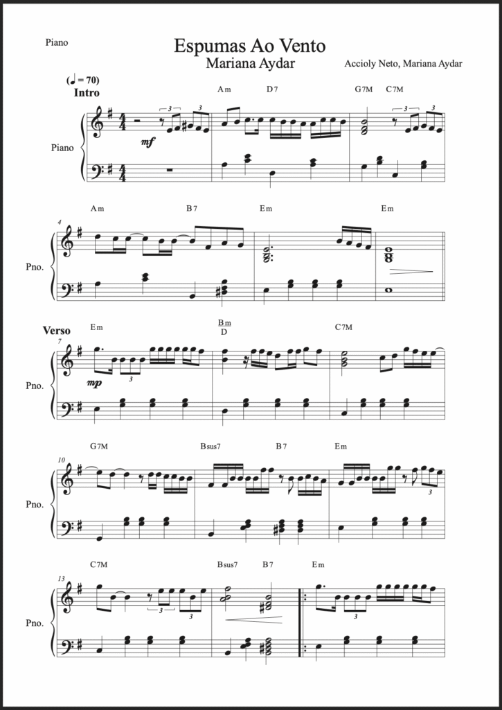 Flauta, Clarinete, Violino, Viola, Trompete, Sax Soprano, Sax Alto, Sax Tenor, Trombone, Cello, Teclado/Piano facilitado (com cifras) e Piano solo (com cifras).